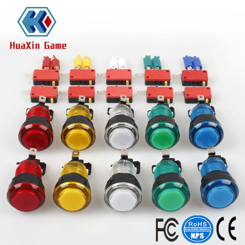 10x New 12V Transparent Glow Arcade Buttons With Micro Switch For Jamma Mame Games Parts Multicade Choice of 5 Colour