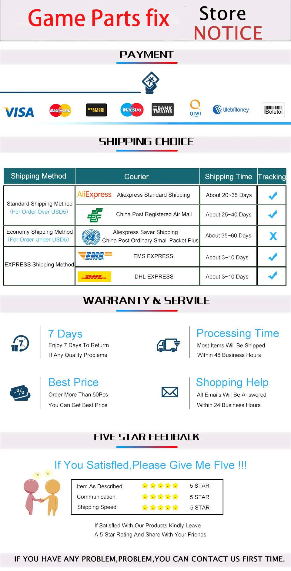 1. If you are satisfied with our goods, please give us positive feedback, thank you for your assistance.