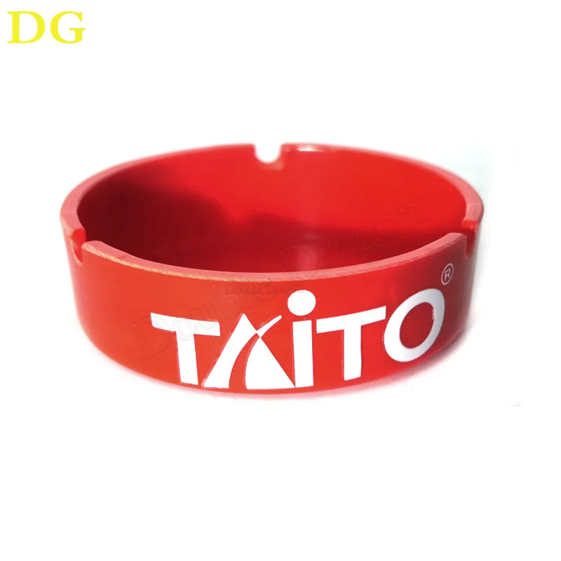 The ashtrays are plastic, not porcelain , and the Logo is made of sticker.