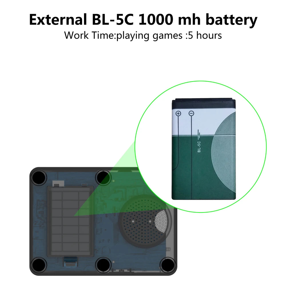 External BL-5C 1000 mh battery .Work Time:playing games :5 hours |